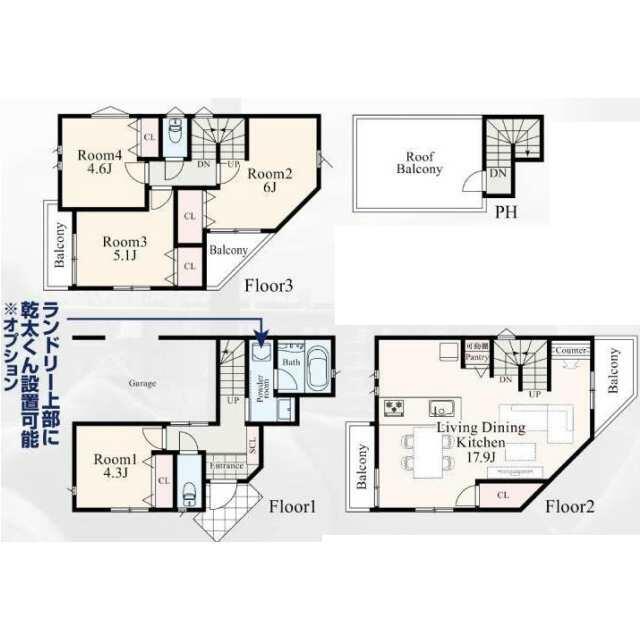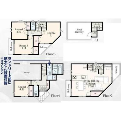 | 間取り(内訳) | 4LDK(洋6/5.1/4.6/4.3LDK17.9) | 建物面積 | 111.15㎡ |